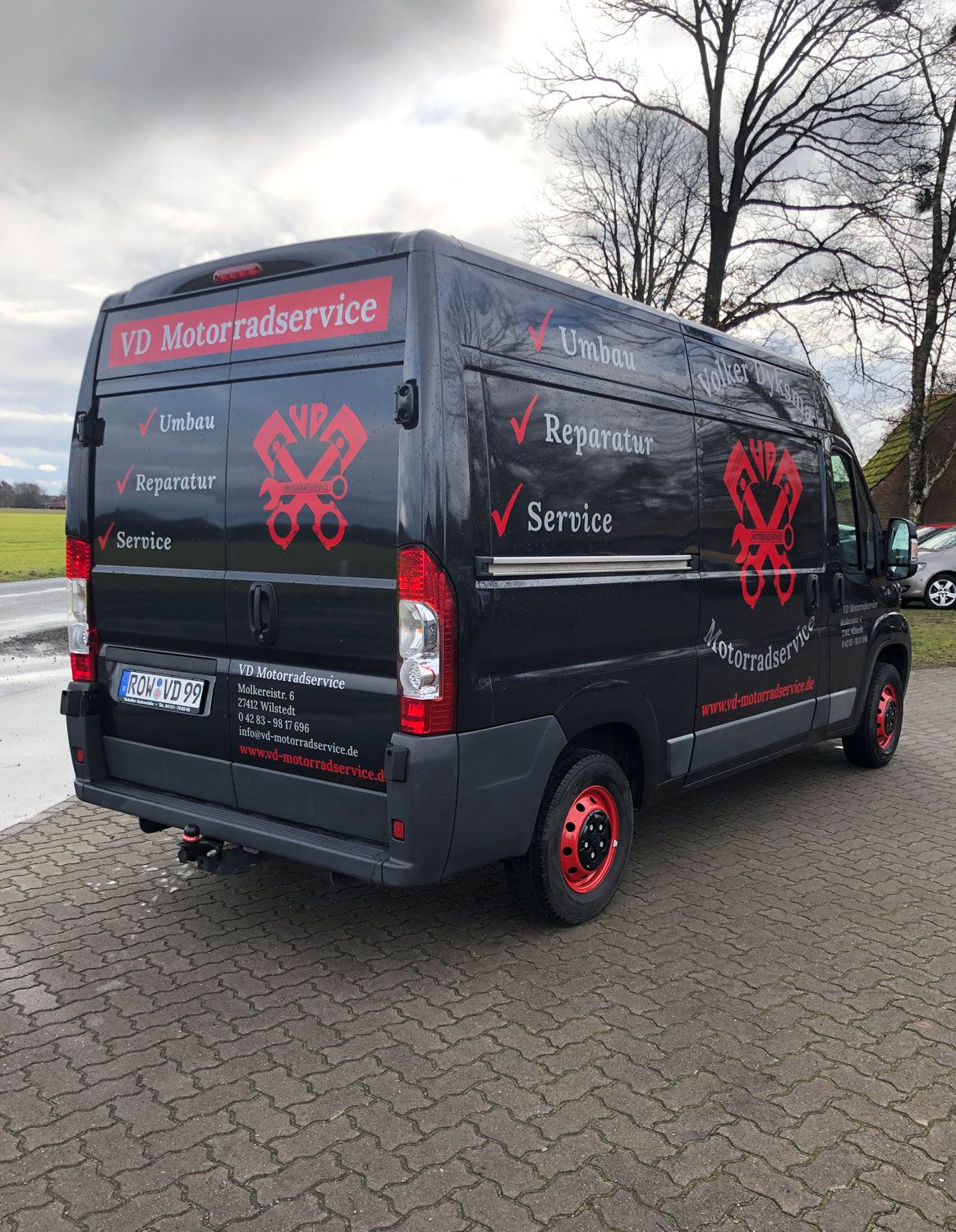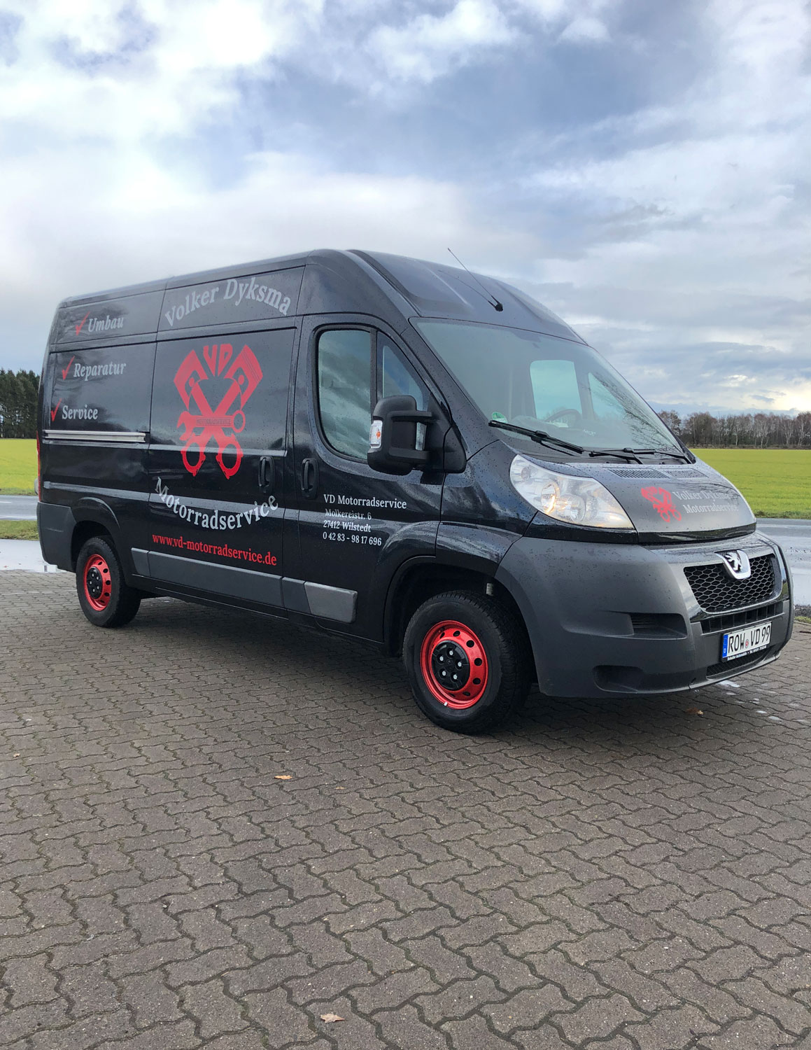 - mit individuellen Linien, die mit der Fahrzeugform laufen; geschnitten mit Cutting Tape, direkt auf dem Fahrzeug -